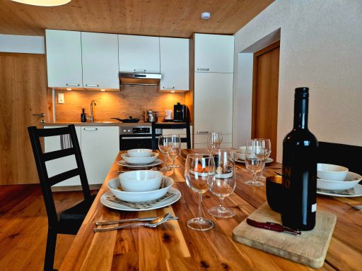 - voll ausgestattete Küche (Herd, Backofen, Kaffeepad-Maschine, Geschirrspüler, Koch- & Essgeschirr)