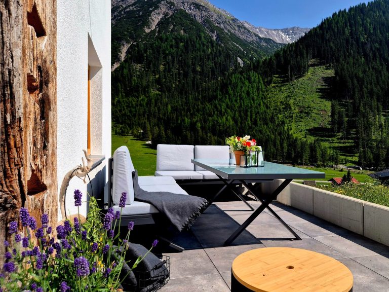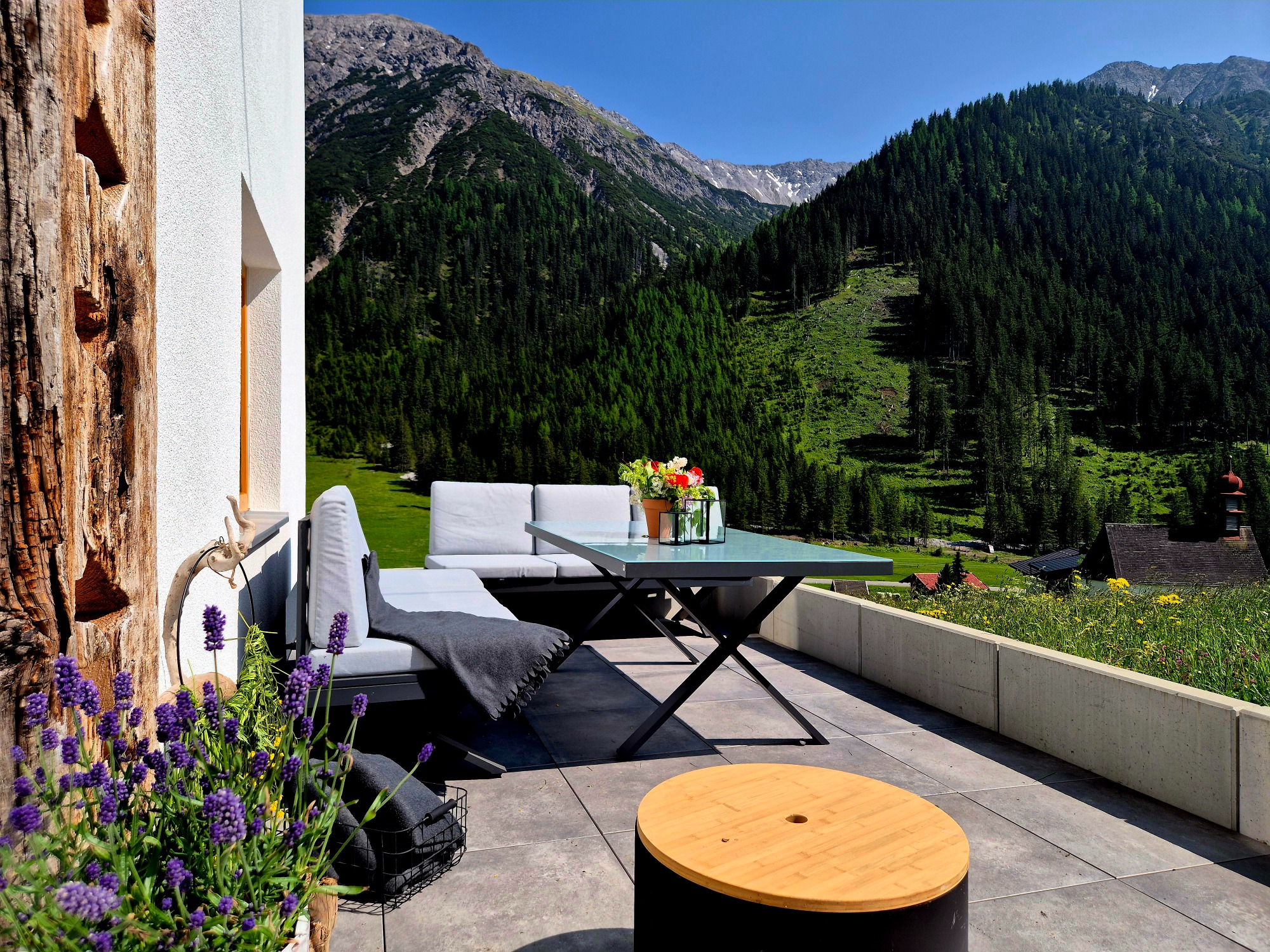Umgeben von Bergwiesen und Wäldern können Sie durchatmen und entschleunigen. Genießen Sie die Schönheit der Lechtaler Alpen direkt von Ihrem Fenster aus.